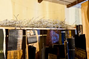Il s’agissait d’investir la galerie, dans ses différents espaces, intérieurs comme extérieurs, et de proposer aux visiteurs une expérience visuelle, auditive, olfactive, gustative, mais aussi des espaces de réflexion et d’échange de pensées. Les différents « ateliers-œuvres » de Martinique et de Dakar s’agrégeront pour tisser ensemble ce nouveau territoire nommé Indigo.