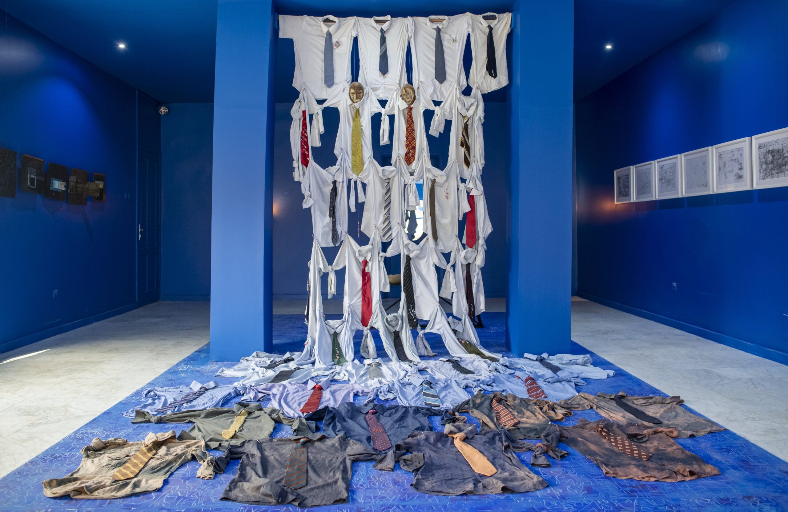 V. J. : La galerie B-Home, espace dédié au design africain, à Dakar, m’a invitée à investir son espace et à recréer in situ mon « atelier-œuvre ». Ce mot in situ a pris tout son sens, car il se réfère à toute œuvre dans un lieu accessible au public et produite pour un lieu spécifique. Ma proposition a été la création de Indigo, un Cabinet des curiosités, une installation mouvante, immersive et collaborative, une rencontre entre ma pratique, mon atelier-œuvre et l’empreinte du lieu.